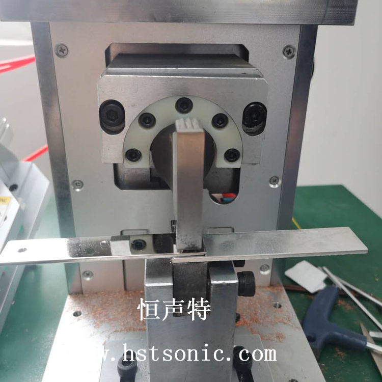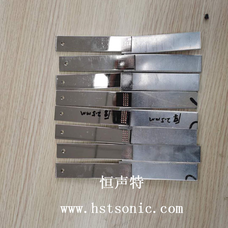 2.5mm銅鍍鎳與鋁片超聲波金屬點(diǎn)焊機(jī)焊接焊點(diǎn)牢固不脫落,超聲波壓焊機(jī)操作簡(jiǎn)單,將金屬片放在下工裝處,啟動(dòng)按鈕,設(shè)備在設(shè)定好的參數(shù)下完成壓接。