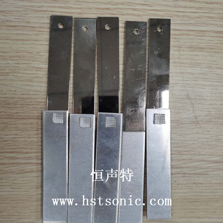 2.5mm銅鍍鎳與鋁片焊接超聲波壓焊表面呈規(guī)則痕跡(可定制),背面呈網(wǎng)紋狀(非平面),壓接形狀見(jiàn)下圖。