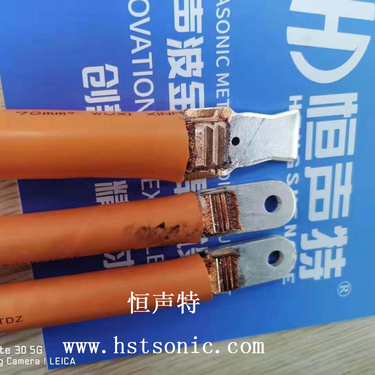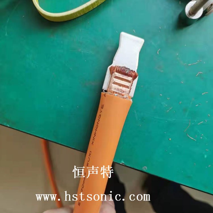 USB端子與銅線焊接超聲波點(diǎn)焊機(jī)用于端子與銅線的壓合搭接焊接,電阻幾乎為零,焊點(diǎn)牢固。