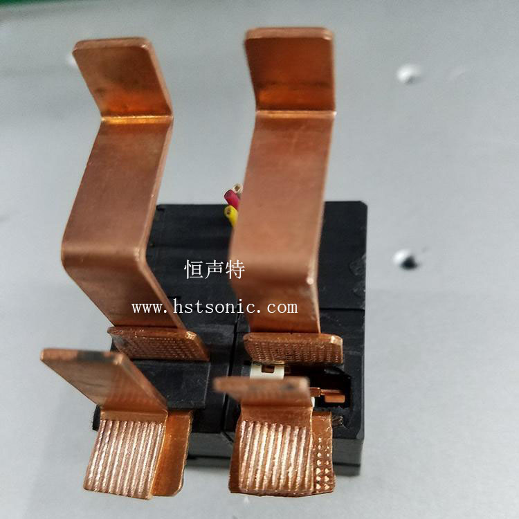 繼電器引腳與銅片焊接超聲波壓焊機操作簡單,將金屬片放在下工裝處,啟動按鈕,設(shè)備在設(shè)定好的參數(shù)下完成壓接。